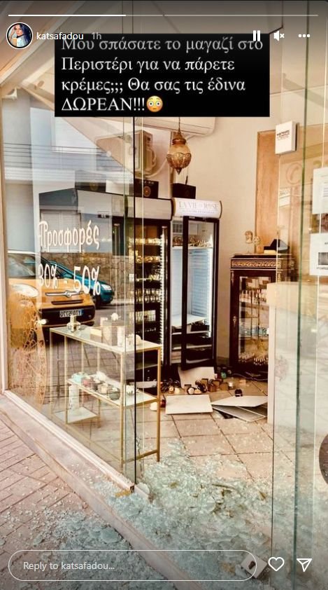 H ιδιοκτήτρια της εταιρείας καλλυντικών «La vie en Rose» έπεσε θύμα διάρρηξης. Σύμφωνα με story που κοινοποίησε στον λογαριασμό της στο Instagram η ίδια, διαρρήκτες έσπασαν την τζαμαρία του καταστήματός της στο Περιστέρι.