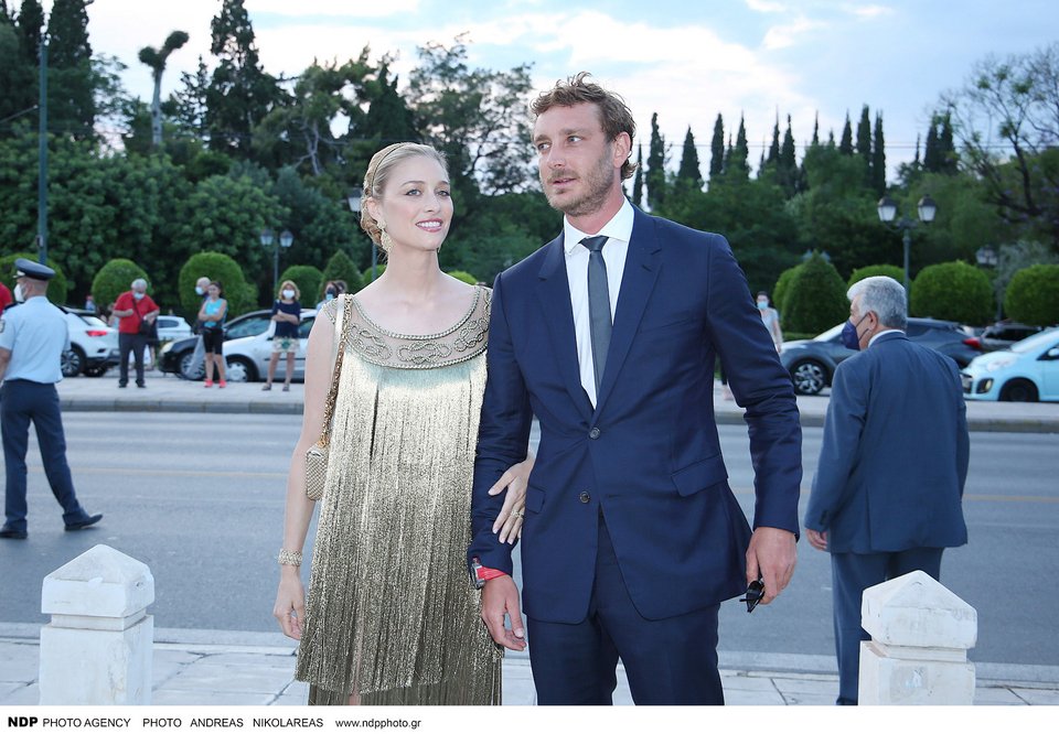 Με πριγκιπικό άρωμα, το ζευγάρι έκανε αμέσως αισθητή την παρουσία του στο Καλλιμάρμαρο. Ο επιχειρηματίας και γιος της Καρολίνας του Μονακό ήταν πολύ κομψός μέσα στο μπλε κοστούμι και το λευκό πουκάμισο που επέλεξε να φορέσει, ενώ η δημοσιογράφος και μοντέλο επέλεξε ένα μακρύ, χρυσό φόρεμα Dior με κρόσσια και κόψιμο στον λαιμό σε αρχαιοελληνικό στιλ.
