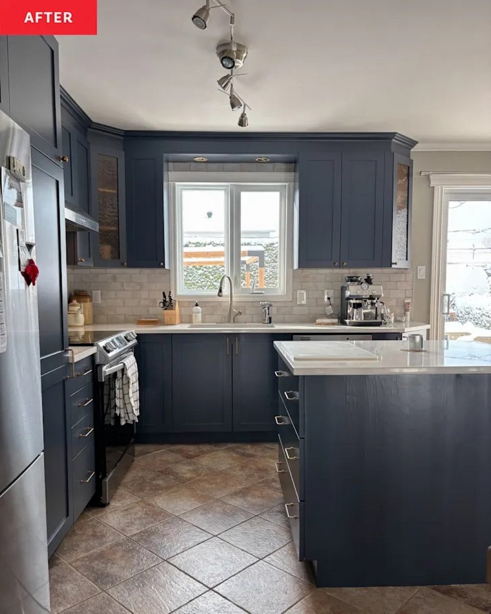 Η Myriam Provost (@atelier.renouveau) είναι μια από τους ανθρώπους που συγκαταλέγονται σ' αυτήν την κοινότητα. Ασχολείται κυρίως με αναπαλαιώσεις επίπλων (ντουλάπια, τραπέζια και συρταριέρες), όμως όταν πλέον δεν άντεχε το χρώμα των ντουλαπιών της κουζίνας της, ήξερε ότι μπορούσε να εφαρμόσει και εκεί την δημιουργικότητά της.