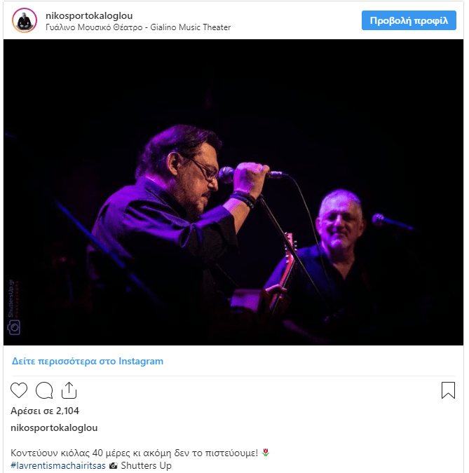 «Κοντεύουν κιόλας 40 μέρες κι ακόμη δεν το πιστεύουμε», έγραψε στην λεζάντα της φωτογραφίας ο Νίκος Πορτοκάλογλου.