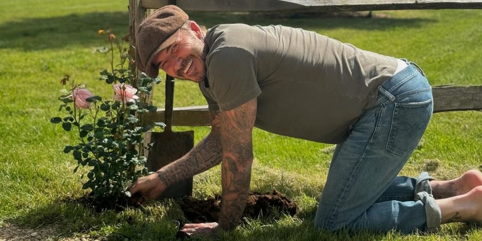 Ο Ντέιβιντ μοιράστηκε ένα βίντεο με τον ίδιο να φυτεύει έναν θάμνο τριανταφυλλιάς, καθώς η σύζυγός του Βικτώρια τον ενθάρρυνε.