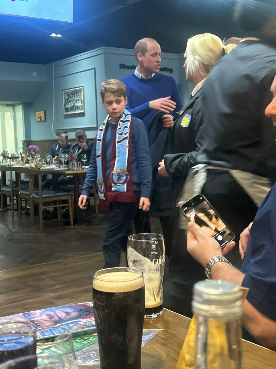 Η κάμερα κατέγραψε τον πρίγκιπα Γουίλιαμ – φανατικό οπαδό της Άστον Βίλα – να μιλά με τον χαμογελαστό γιο του, ο οποίος ήταν ντυμένος με ένα κασκόλ της ομάδας.