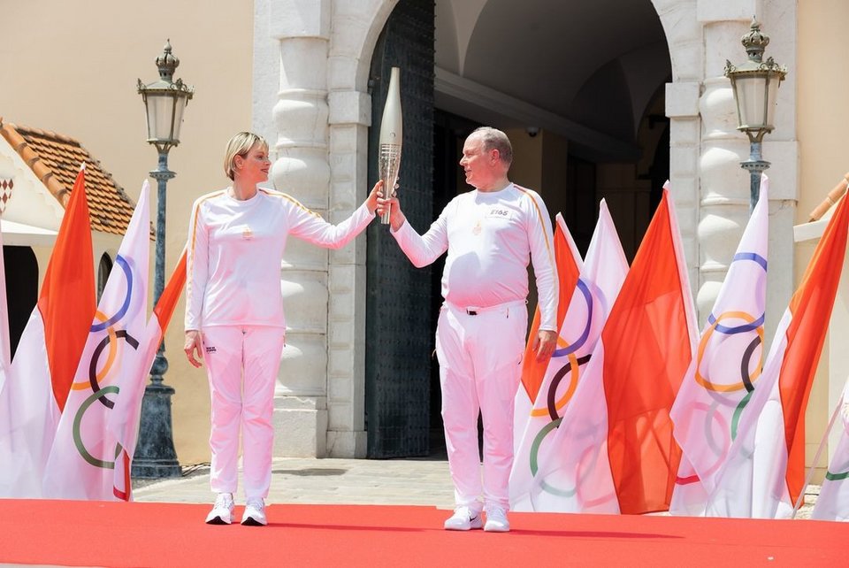 Ντυμένοι στα λευκά από την κορυφή μέχρι τα νύχια με την επίσημη στολή Relais De La Flamme (που σημαίνει Ολυμπιακή Λαμπαδηδρομία), ο Αλβέρτος και η Σαρλίν κράτησαν με υπερηφάνεια την ιστορική δάδα, χαμογελώντας στο πλήθος μαζί με τους άλλους λαμπαδηδρόμους.