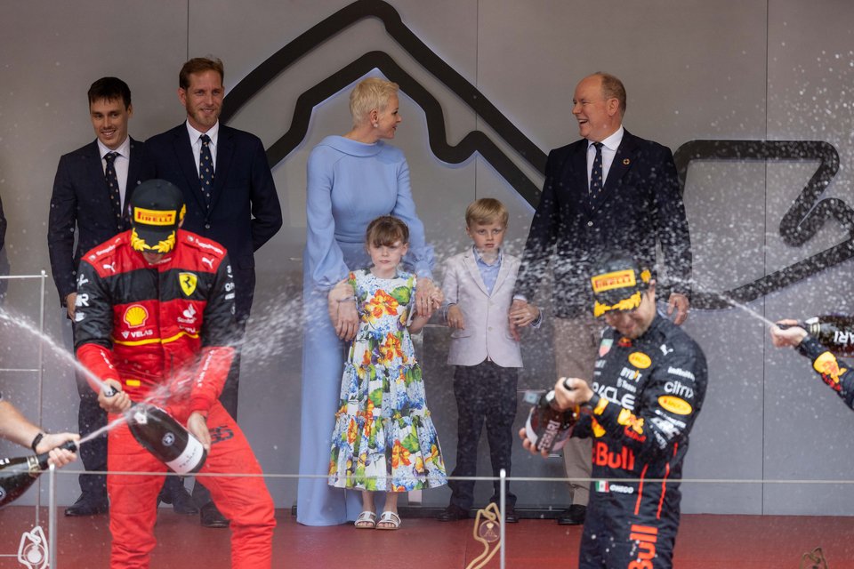 H πριγκίπισσα Σαρλίν έκανε μάλιστα και απονομή, έδωσε το δεύτερο βραβείο στον Carlos Sainz, της Ferrari. Τη συνόδευσε η κόρη της, Γκαμπριέλα, και φυσικά τα χαμόγελα περίσσεψαν. Οι οδηγοί βέβαια είχαν ρητή εντολή στο ντους με τη σαμπάνια που ακολούθησε να τη ρίχνουν μόνο μπροστά και να μην καταβρέξουν το πριγκιπικό ζεύγος...