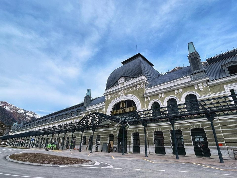 Με φόντο τα χιονισμένα βουνά των Πυρηναίων, βαθιά στην κοιλάδα της Αραγονίας, ένας πρώην εγκαταλελειμμένος σιδηροδρομικός σταθμός, έχει μετατραπεί πλέον σε ένα πολυτελές ξενοδοχείο.