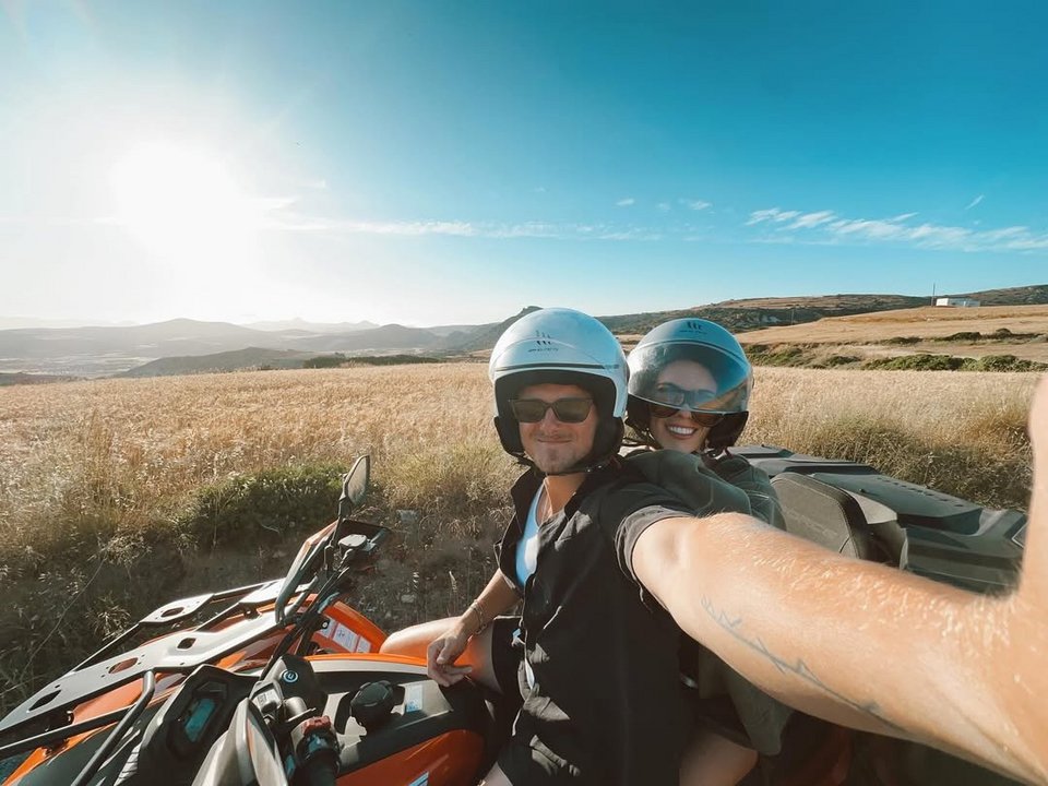Σε πολλές φωτογραφίες ποζάρει χαμογελαστός στο πλευρό της συζύγου του, δείχνοντας τη χαρά του για την εξόρμηση στα ελληνικά νησιά.