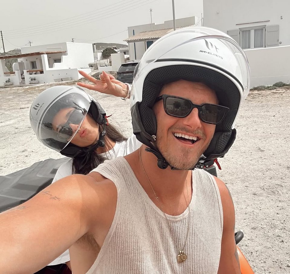 Οι διακοπές τους ξεκίνησαν από τη Σαντορίνη, με τον Καναδό ηθοποιό να γράφει στο Instagram: «Ένα ταξίδι του μέλιτος που περιμέναμε καιρό».