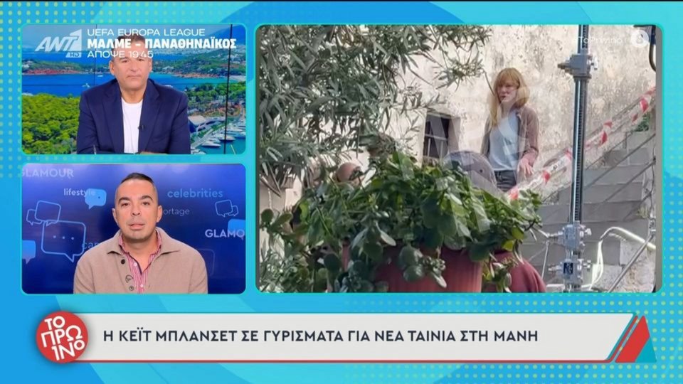Την πρώτη φωτογραφία της Κέιτ Μπλάνσετ από τα γυρίσματα της νέας της ταινίας, που γίνονται στη Μεσσηνιακή Μάνη, εξασφάλισε ο δημοσιογράφος Θάνος Βάγιος για το «Πρωινό».