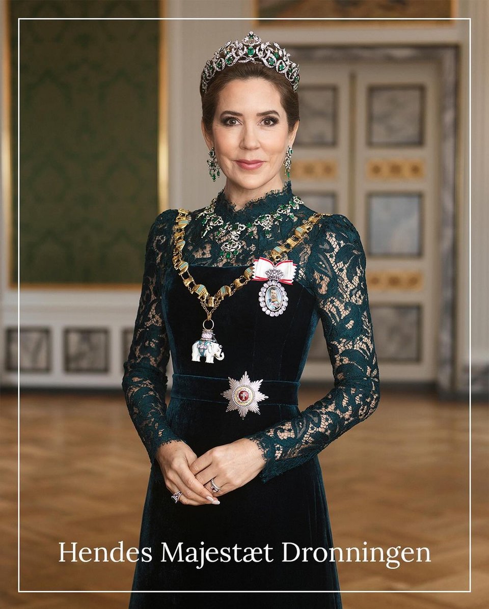 Οι φωτογραφίες, που τραβήχτηκαν από τον φωτογράφο Steen Evald στη βασιλική αίθουσα υποδοχής στο παλάτι του Christiansborg, δείχνουν την πάντα κομψή Μαίρη με ένα σκούρο πράσινο φόρεμα και τα κοσμήματα του στέμματος.