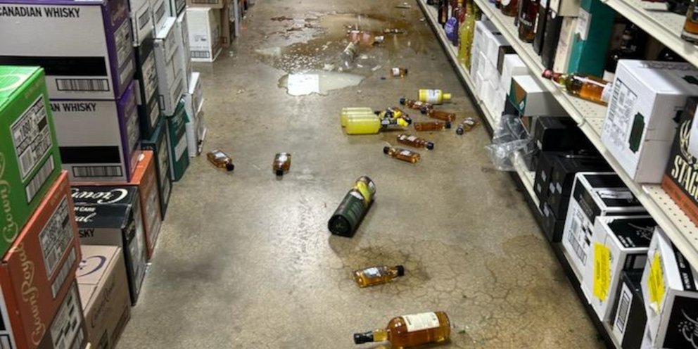 Άφησε πίσω του μια διαδρομή από σπασμένα μπουκάλια αλκοόλ, ανακατεμένα ράφια και αναποδογυρισμένα κιβώτια, σύμφωνα με το Τμήμα Προστασίας και Καταφυγίου Ζώων της κομητείας Hanover.