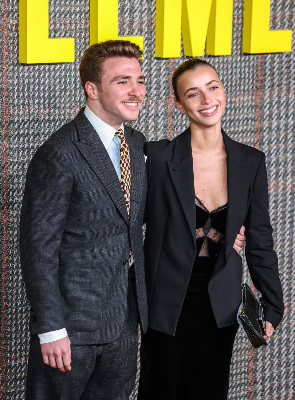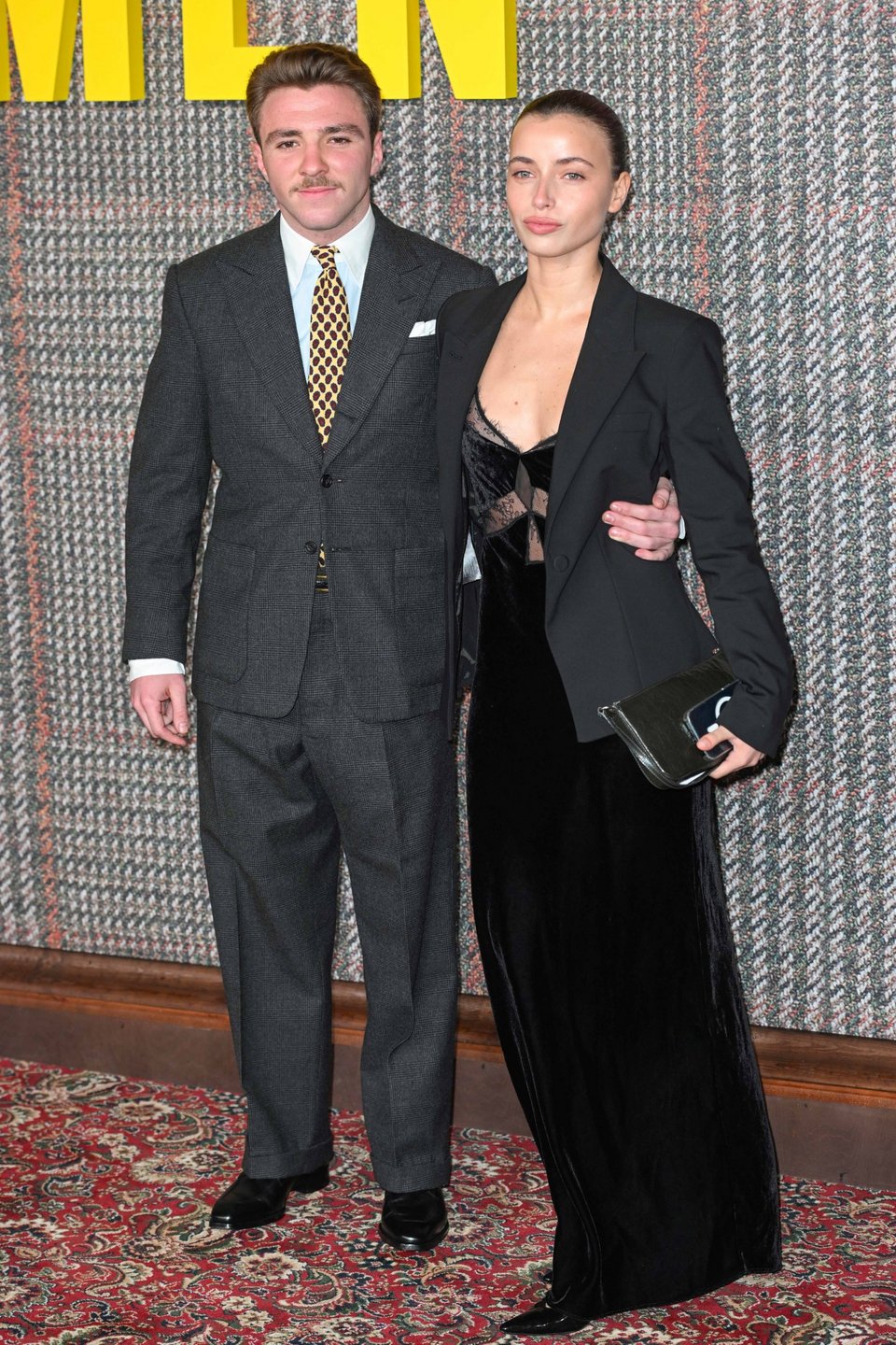 Ο Ρόκο Ρίτσι φορούσε ένα κλασικό γκρι ριγέ κοστούμι με λευκό πουκάμισο και γραβάτα με μοτίβα και '80s vibes, ενώ η σύντροφός του έκανε μια total black εμφάνιση.