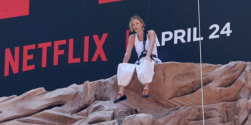 Στα άκρα έφτασε η Σαρλίζ Θερόν προκειμένου να προωθήσει τη νέα της ταινία επιβίωσης «Apex».