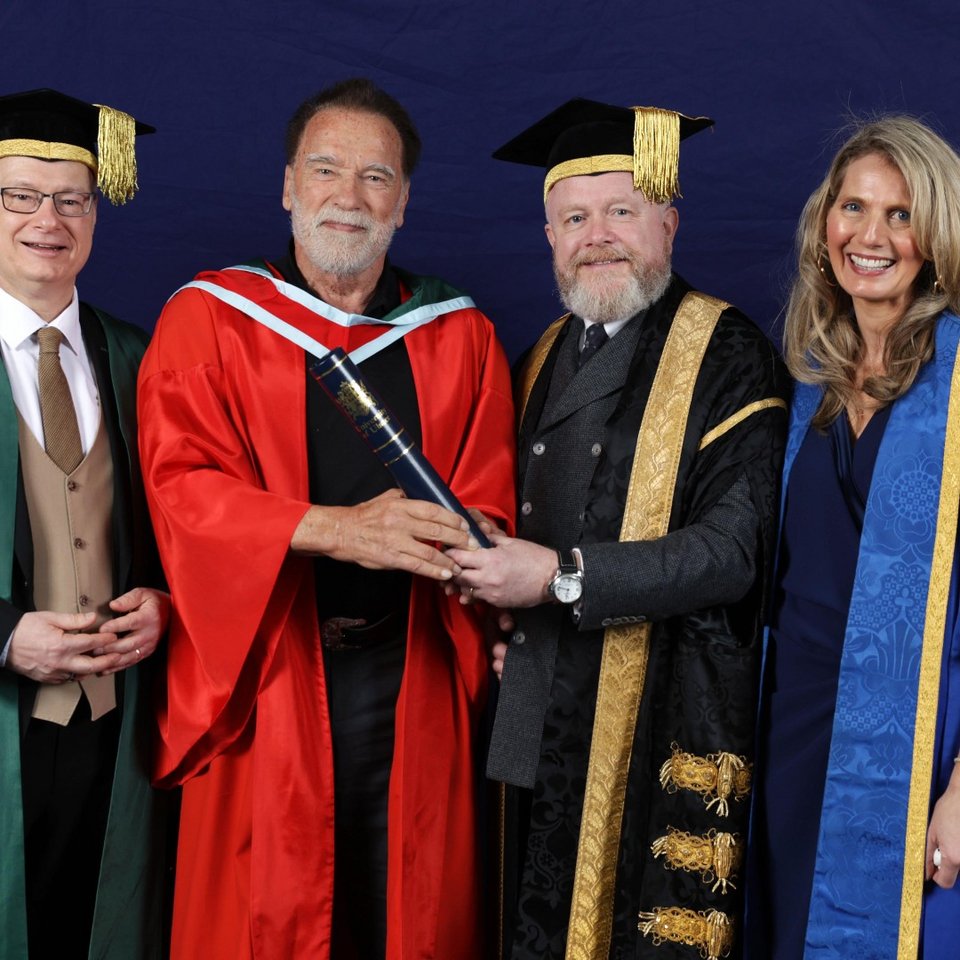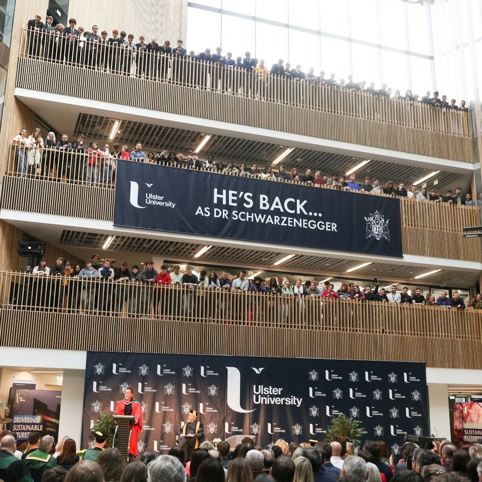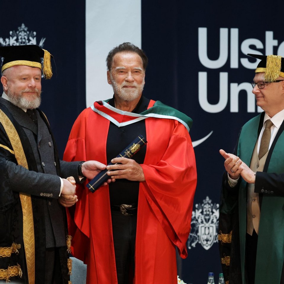 Ο Άρνολντ Σβαρτσενέγκερ έλαβε τιμητική διάκριση από το Ulster University στο Μπέλφαστ.