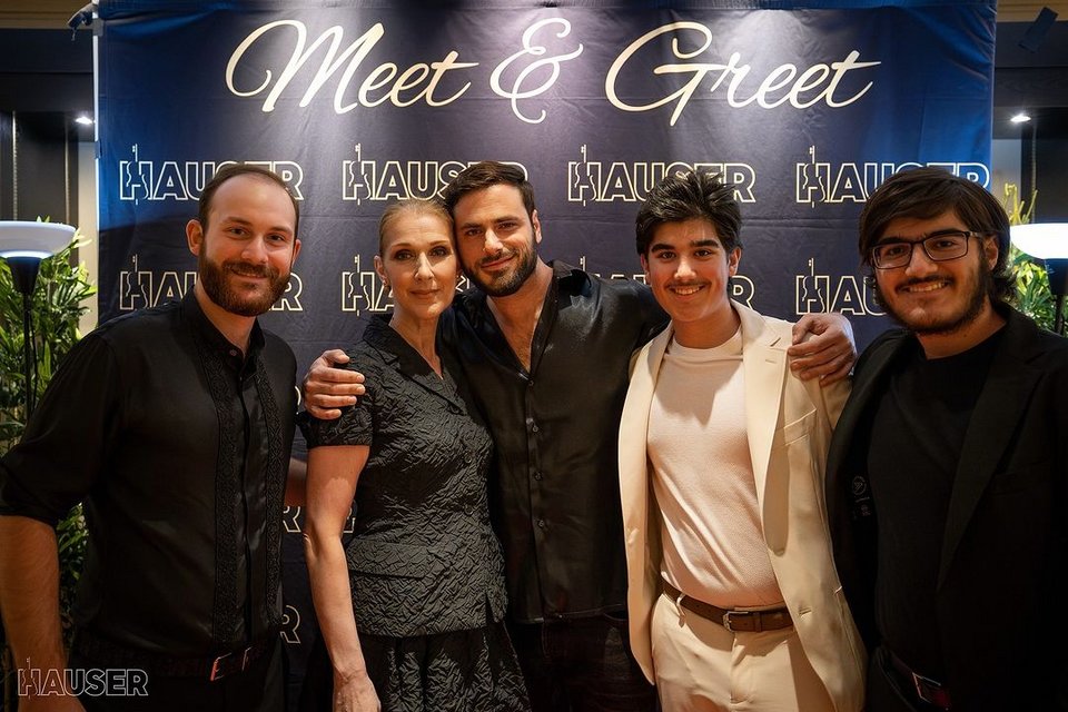 Η Celine κάθισε στο πλήθος με τον μεγαλύτερο γιο της René-Charles, 23 ετών, και τους δίδυμους Nelson και Eddy, 13 ετών, πριν συναντήσει τον Hauser στα παρασκήνια.