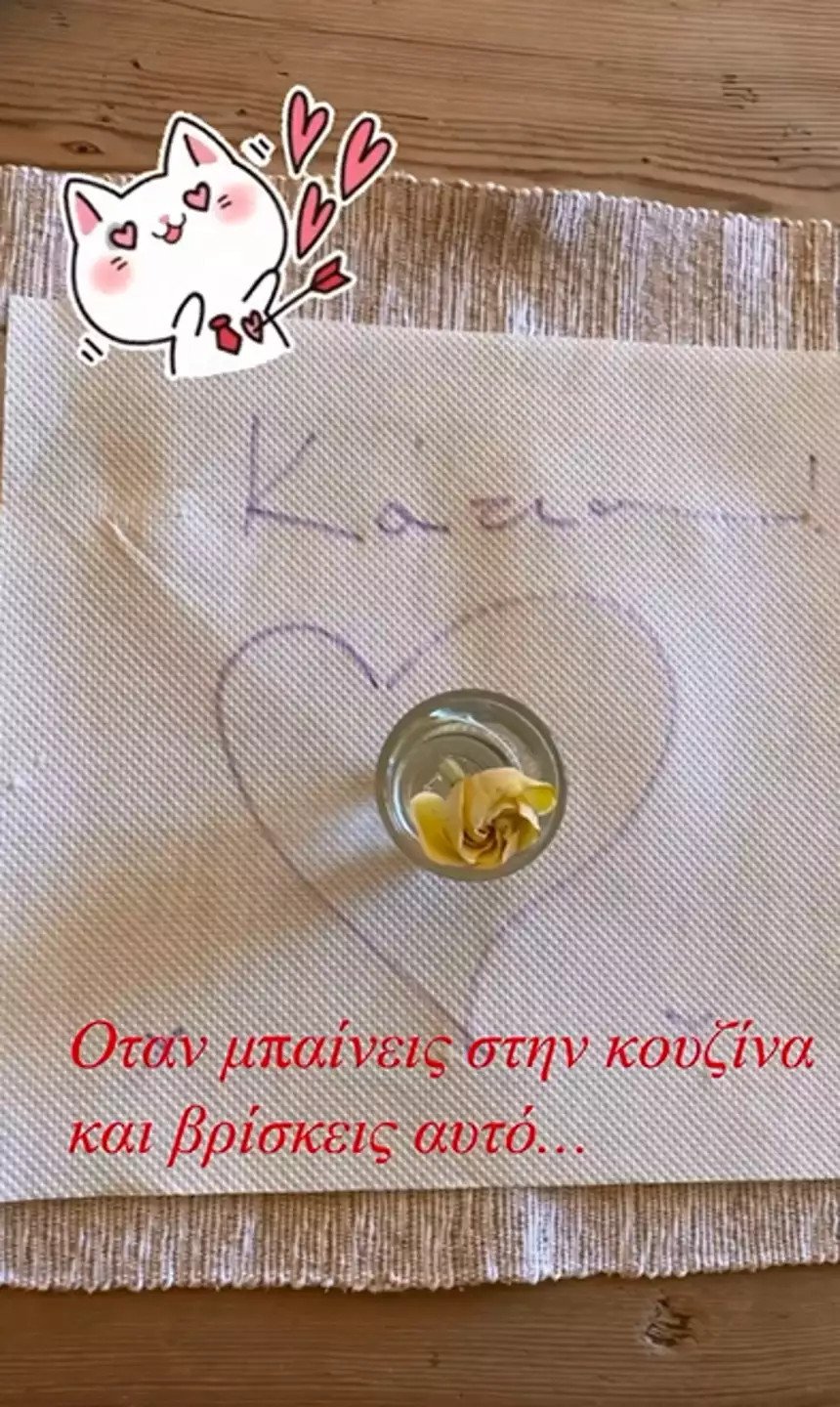 Ο Έλληνας pop star έκοψε από τον κήπο τους ένα λουλούδι και το άφησε στην κουζίνα, γράφοντας σε ένα κομμάτι χαρτί «Κάτια».