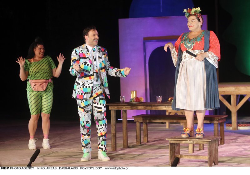 Στην παράσταση πρωταγωνιστούν ο Χρήστος Χατζηπαναγιώτης, ως Μαρία Πενταγιώτισσα και η Βίκυ Σταυροπούλου. Να σημειωθεί ότι το ρόλο της είχε η Ελένη Καστάνη, ωστόσο, ξαφνικά, 10 ημέρες πριν την πρεμιέρα της παράστασης, αποχώρησε από το θίασο. Τότε επιλέγει η Βίκυ Σταυροπούλου η οποία παρότι είχε μόνο 10 ημέρες για να προετοιμαστεί, τα κατάφερε άψογα. Στην παράσταση παίζει και η κόρη της Βίκυς Σταυροπούλου, Δανάη Μπάρκα και είναι μια πραγματικά ευτυχισμένη συγκυρία για τους δύο φίλους, Χρήστο Χατζηπαναγιώτη και Βίκυ Σταυροπούλου αλλά και τη Δανάη Μπάρκα να βρεθούν οι τρεις τους στη σκηνή. Λίγα λόγια για την παράσταση