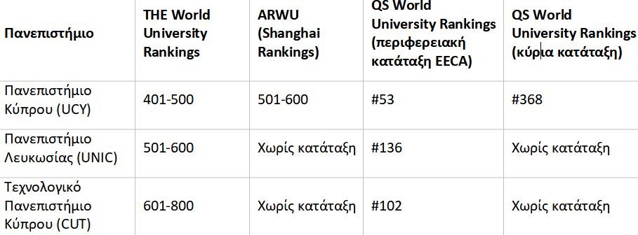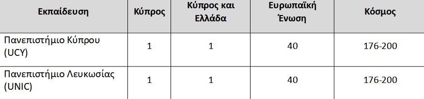 Η κατάταξη των μεγαλύτερων κυπριακών πανεπιστημίων σε αυτές τις πανεπιστημιακές κατατάξεις για το 2023: