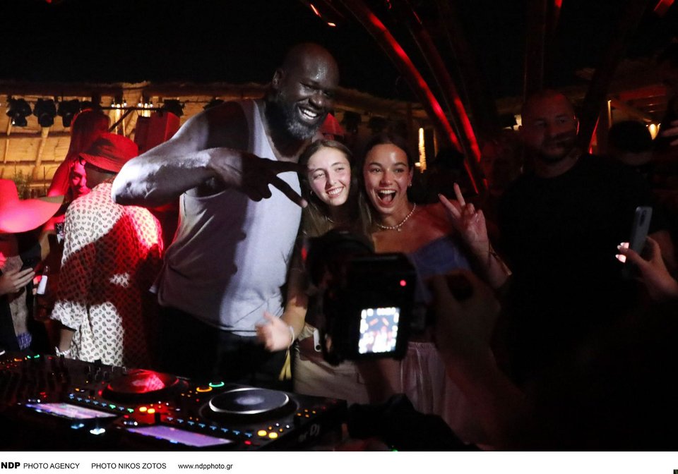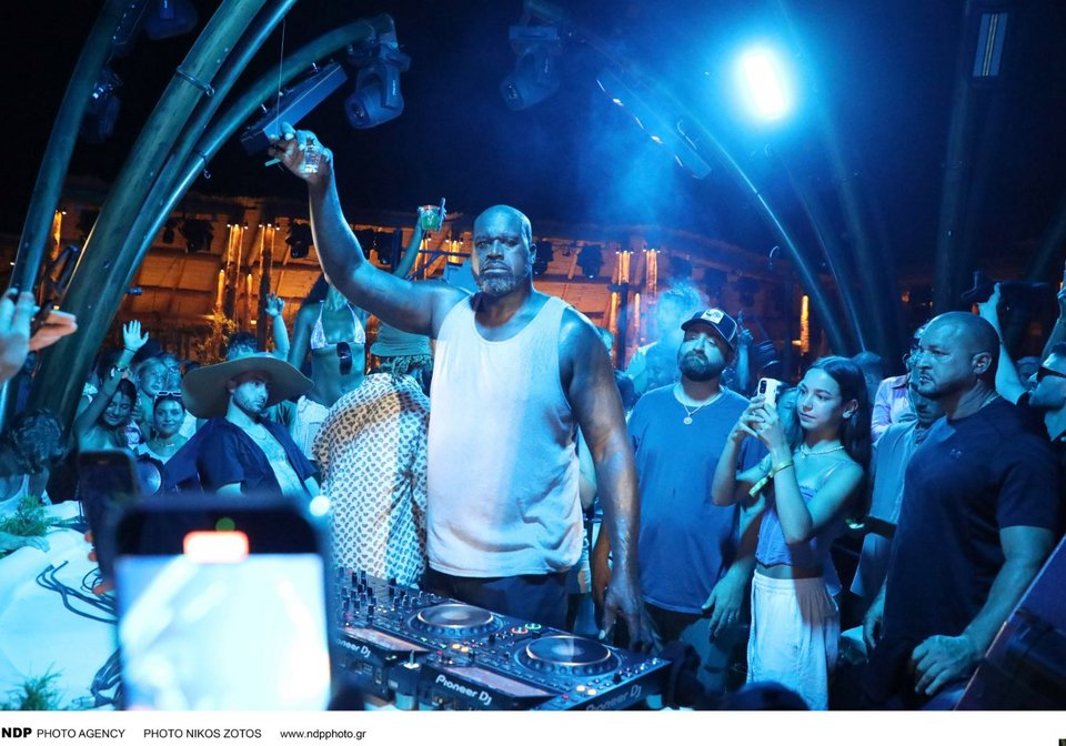 Στο γνωστό μαγαζί της Μυκόνου SantAnna έγινε ένα από τα μεγαλύτερα events του καλοκαιριού και ένα πάρτι που θα θυμούνται για καιρό όσοι διασκέδασαν σε αυτό. Ο θηριώδης σέντερ του NBA, που είχε πάει να δει τον Black Coffee που ξεσήκωσε δυόμισι χιλιάδες ανθρώπους, ανέβηκε χθες και ο ίδιος στα decks του γνωστού κλαμπ. Στα highlights της βραδιάς, όπως αναφέρει το Mykonos Live TV, τα «περίεργα» γυαλιά που φορούσε στο κεφάλι ο Shaquille, η ατάκα «This Is Sparta» που ξεστόμισε ενθυμούμενος την επική σκηνή με τον Gerard Butler από την κινηματογραφική ταινία «300», αλλά και η στιγμή που έβγαλε το t-shirt του και έμεινε με το φανελάκι για να συνεχίζει να παίζει μουσική!