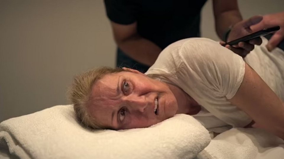 Με κατακόκκινο πρόσωπο, δακρυσμένη, κλαίγοντας από τον πόνο και μη μπορώντας να ελέγξει το σώμα της, η Σελίν Ντιόν υπομένει μια βασανιστική δεκάλεπτη κρίση σε νέες σκηνές από το ντοκιμαντέρ που αποκαλύπτει τη μάχη της με το Σύνδρομο Δύσκαμπτου Ανθρώπου.