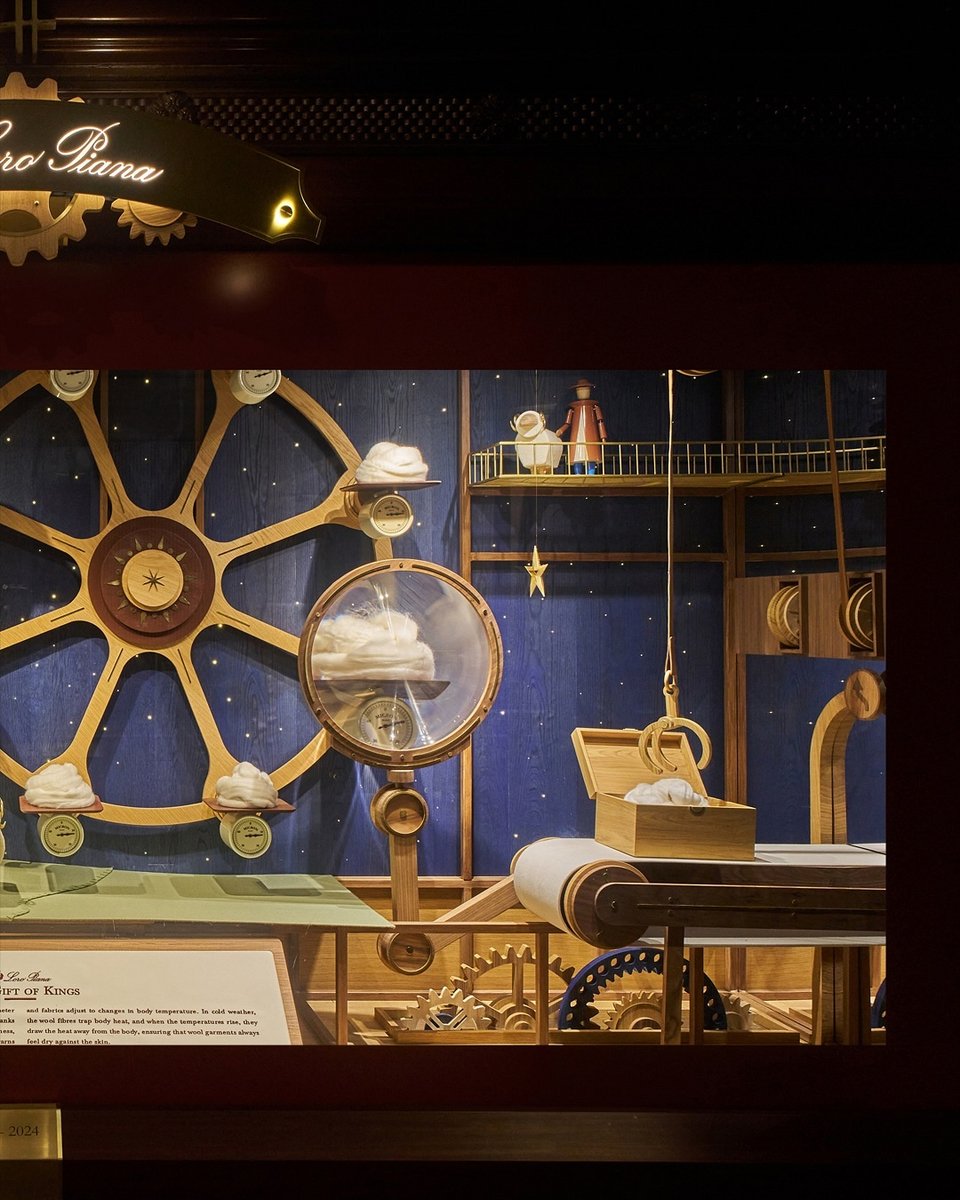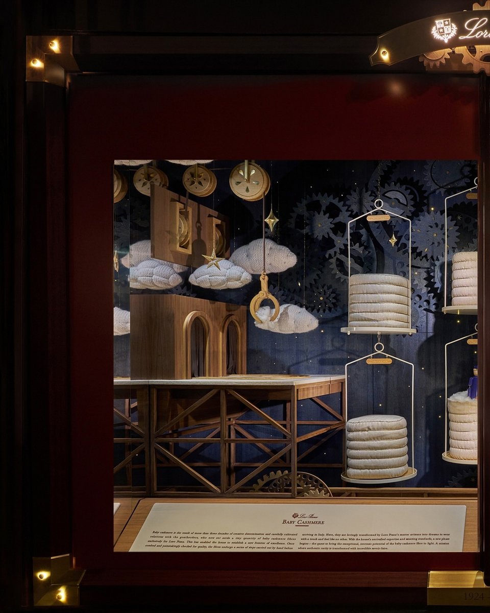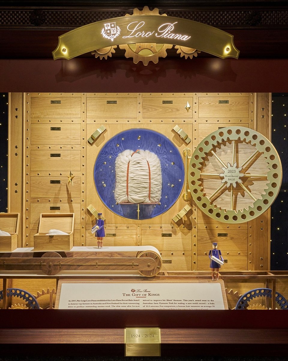 Πίσω από μια εντυπωσιακή επίδειξη στα 36 παράθυρα του εμβηματικού πολυκαταστήματος, ο Loro Piana έχει μεταμορφώσει αυτόν τον χώρο σε μια ιδιαίτερη βιτρίνα που αποκαλύπτει την παρασκηνιακή τέχνη των ατελιέ του.