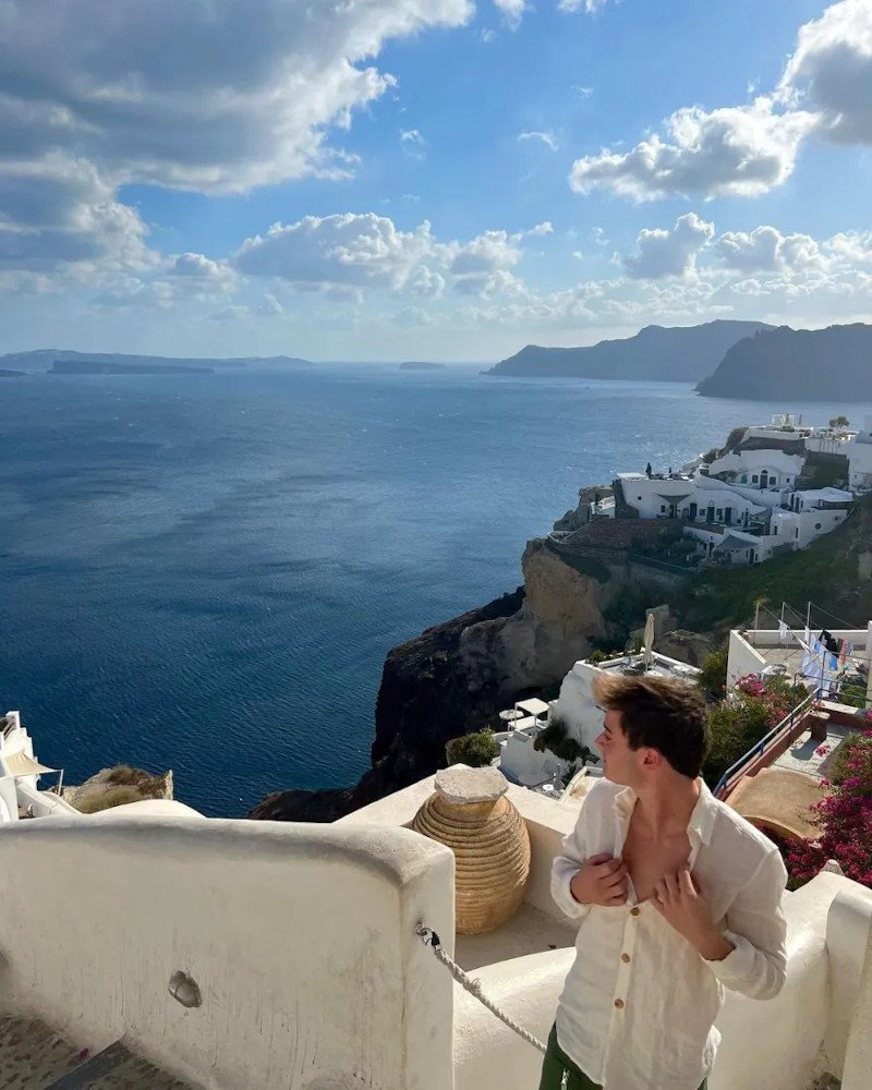 Τις ομορφιές της Σαντορίνης απολαμβάνει ο ηθοποιός Νόα Σναπ, γνωστός από τη σειρά Stranger Things.