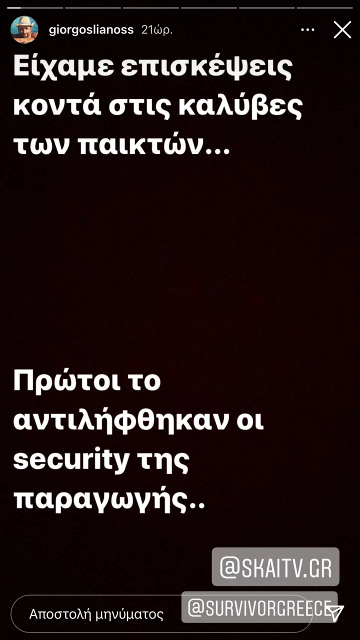 Και συμπλήρωσε ότι το ιγκουάνα έγινε αντιληπτό από security της παραγωγής ενώ τράβηξε το βίντεο την ώρα που ήταν κοντά στις καλύβες των παικτών!