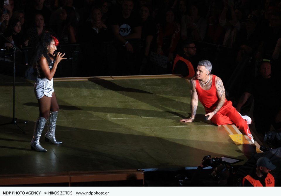 Λίγο μετά τις 9 το βράδυ της Πέμπτης ο Ρόμπι Γουίλιαμς ανέβηκε στη σκηνή του Καλλιμάρμαρου για πρώτη φορά, ξεσηκώνοντας το κοινό.