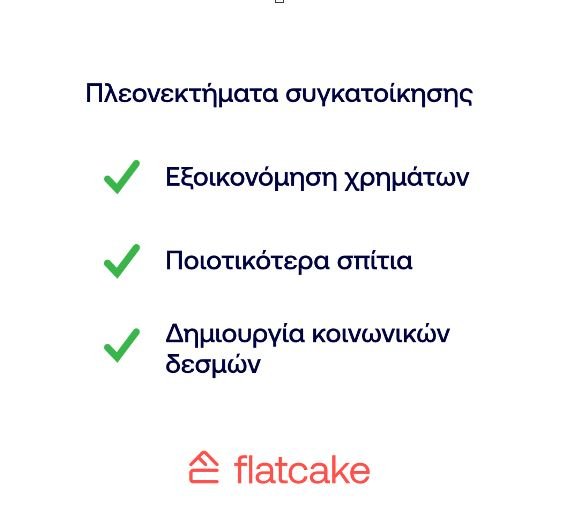 Το flatsharing δεν είναι για όλους. Για όσους όμως αποτελεί πιθανή εναλλακτική, μπορεί να προσφέρει πολλά περισσότερα από την εξοικονόμηση χρημάτων (αν και σίγουρα μπορεί να κάνει θαύματα για τον τραπεζικό τους λογαριασμό!). Μπορεί να προσφέρει μια πιο ποιοτική κατοικία, μια πιο κεντρική δημοφιλή γειτονιά, μια νέα παρέα, μια καλύτερη ζωή.