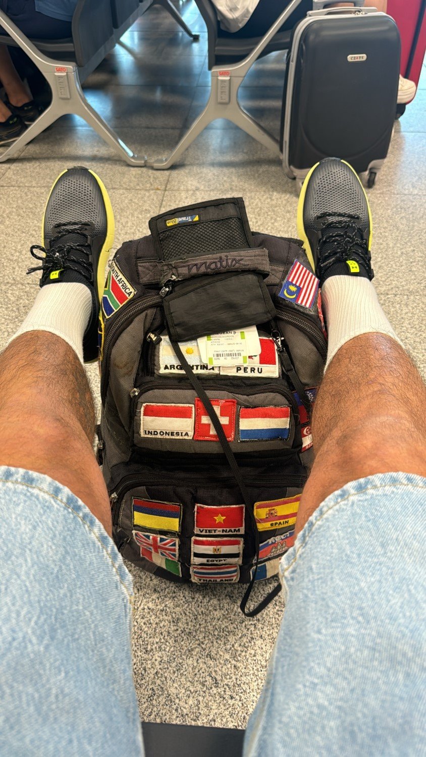 Λίγο αργότερα, ο ίδιος «ανέβασε» και ένα story από το αεροδρόμιο, με τον Γιώργο Μαυρίδη να φωτογραφίζει το σακίδιό του, διακοσμημένο με σημαίες από διάφορες χώρες.