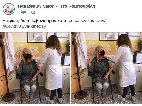 Η Τέτα Καμπουρέλη έκανε το εμβόλιο κατά του κορωνοϊού και έκανε σχετική ανάρτηση στο Facebook.