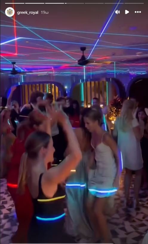 Σε ένα άλλο βίντεο από τη γαμήλια δεξίωση που δημοσιεύτηκε στον λογαριασμό greek_royal στο Instagram, φαίνεται πως οι καλεσμένοι ξεσάλωσαν στον χορό υπό τους ήχους ντίσκο μουσικής.
