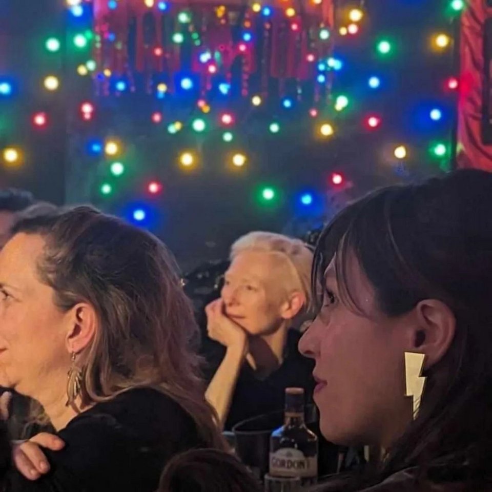 Μάλιστα, η Μαριλού μοιράστηκε και μερικές φωτογραφίες στο Instagram από τη βραδινή έξοδο της Τίλντα Σουίντον στη νυχτερινή Αθήνα. Οι δυο τους πόζαραν μαζί, ενώ η Τίλντα έδειχνε ευδιάθετη, με την παρέα της να απολαμβάνει το σόου, ενώ χειροκροτούσε συνεχώς.