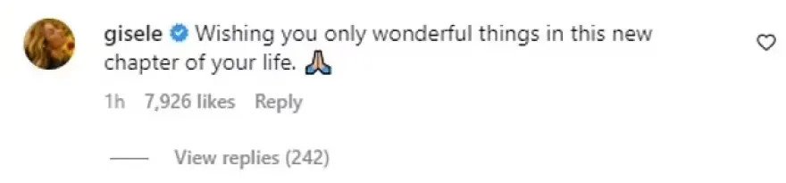 Η Ζιζέλ έγραψε κάτω από τη δημοσίευσή του: «Σου εύχομαι μόνο υπέροχα πράγματα σε αυτό το νέο κεφάλαιο της ζωής σου».