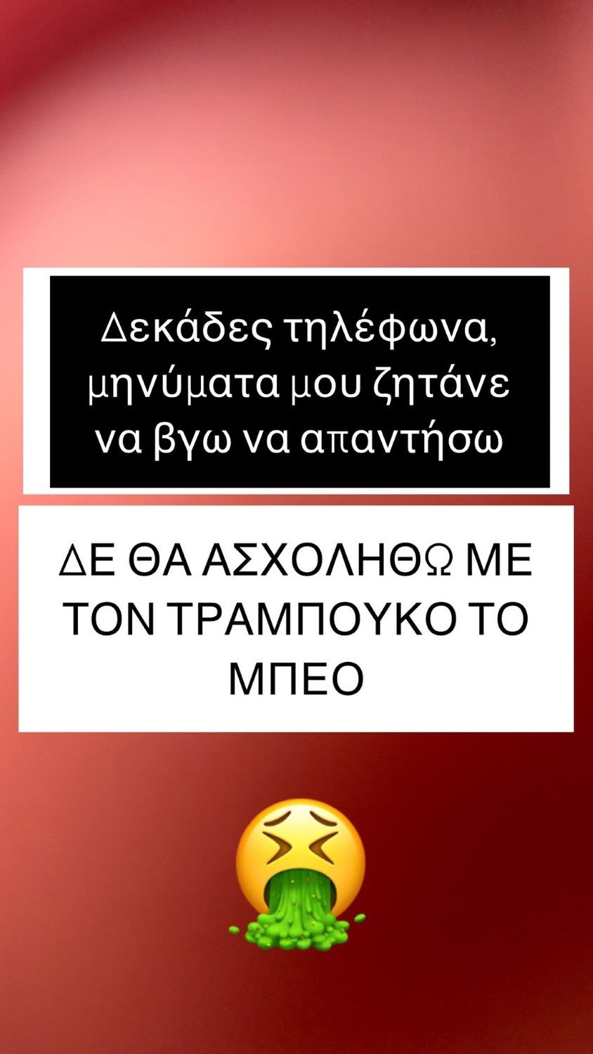 «Δεκάδες τηλέφωνα, μηνύματα, μου ζητάνε να βγω να απαντήσω. Δεν θα ασχοληθώ με τον τραμπούκο τον Μπέο».